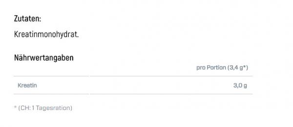 - Liefert 3 g Kreatin bei einer täglichen Aufnahme